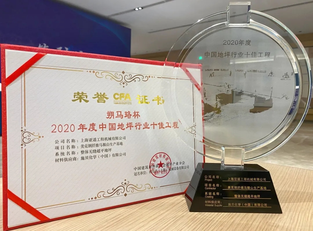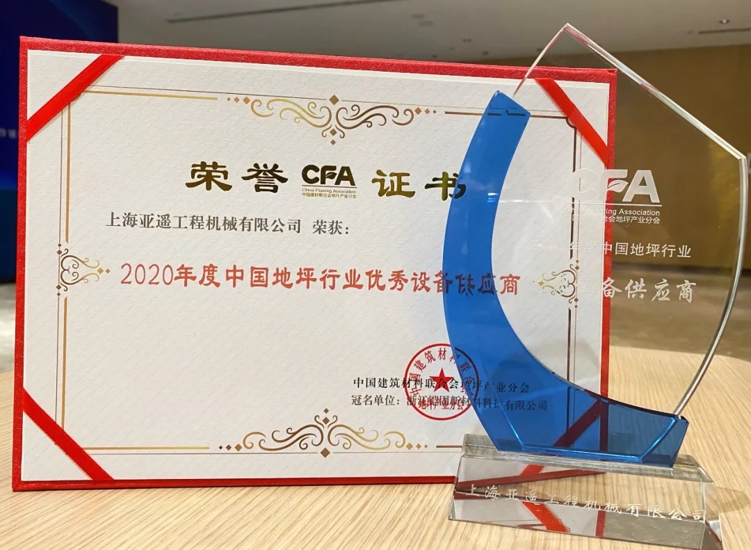 亞遙被評為2020年度中國地坪優秀設備工具供應商